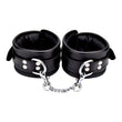 Soft and padded for comfort and safety but sturdy for advanced and lengthy bondage play, these cuffs will leave you really Bound. Establish a tone of exquisite pleasure and pain by restraining your partner with these exclusively high quality, durable nubuck leather wrist cuffs. Comes with a detachable double trigger hook chain connecting the D-rings on each cuff, further restricting your partner's movement if desired.