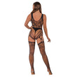 Lace by LJ Cut Out Lace Suspender Bodystocking Black