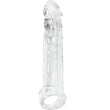 Gain 3 inches in length and up to 25% in girth with this simple but seriously gratifying penis enhancer. Just lube up, slip the ball loop around your testicles and the sleeve over your manhood, and revel in your partner's delight as they latch onto your newly improved member.