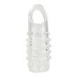 Dive into a world of enhanced pleasure with this stretchy, textured penis sleeve. The comfortable penis sleeve can boost your partner's pleasure and your girth. It features a textured design that will stimulate your partner both vaginally and anally and has a ball loop to keep the penis sleeve in place.
